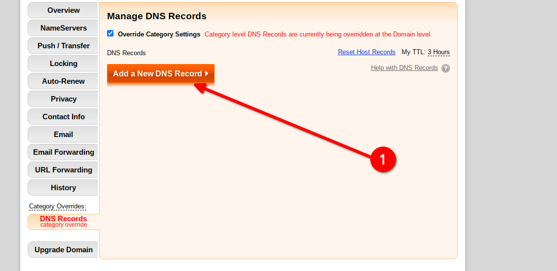 Now click onto Add a New DNS record button again and this time enter the following DNS record: